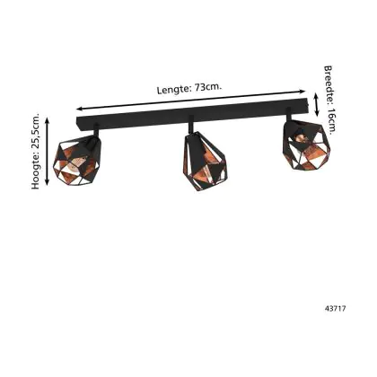 Eglo Ceiling Light Carlton 7 Steel Black Copper | IP20 - Suitable for 3x E27