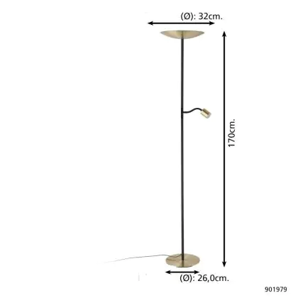 Eglo Floor Lamp Conivarino Steel Brushed Brass, Black 30.5W 3150lm - 827 Extra Warm White | Dimmable