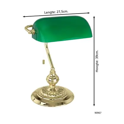 Eglo Table Lamp Banker Steel Gold Green | IP20 - Suitable for 1x E27