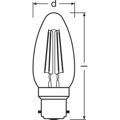 Ledvance Classic Performance LED Bulb B22d Candle Filament Clear 4W 470lm - 827 Extra Warm White | Replaces 40W
