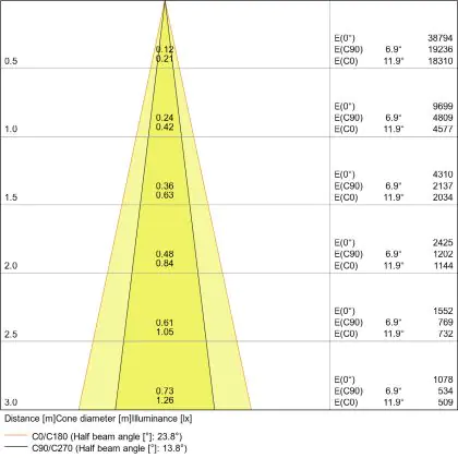 A beam angle indicates the angle of the light beam coming from a light source. The smaller the radiation angle in degrees (D), the narrower the beam angle.