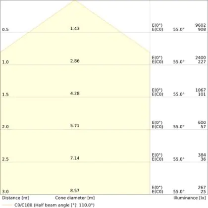 ![]() The colour code is a combination of colour rendering (CRI) and light colour (Kelvin). The first number indicates the colour rendering (1 = very poor colour rendering, 9 = maximum colour fastness). The second and third number contains the light colour. Example: the colour code 830 consists of good colour rendering (8) and warm white light (3000K). |