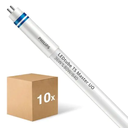Multipack 10x Philips LED Tube T5 MASTER (HF) Ultra Output 36W 5600lm - 840 Cool White | 145cm - Dimmable - Replaces 80W