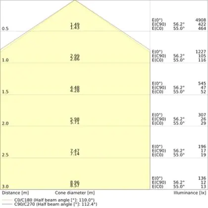 The Luminous Efficacy (lm/W) indicates how efficiently a light source uses energy. We divide the number of lumens by the wattage. The higher the number, the more efficient a product is in terms of energy consumption. LED lighting has a considerably higher lumen/Watt ratio than conventional lighting.