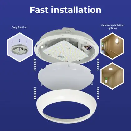 ![]() Lighting with a built-in emergency lighting unit (battery) continues to burn for a certain time if the power fails. |