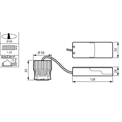 Cut out (mm) | 68 |